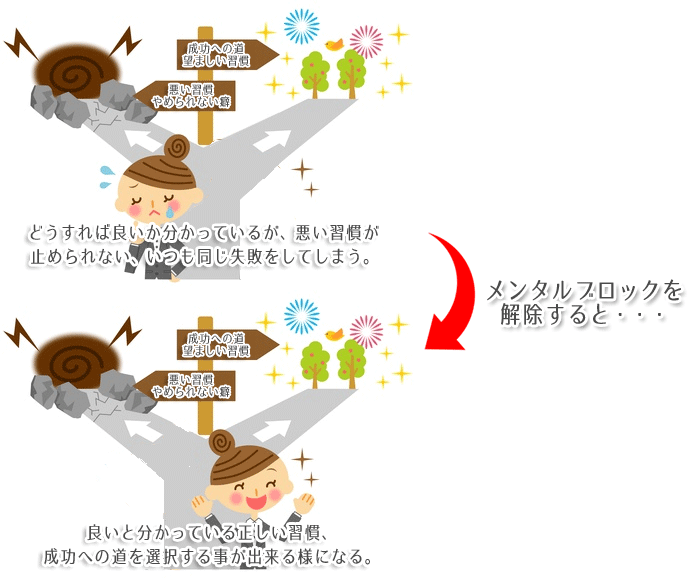 なかなか直せない悪い習慣や止められない癖を改善できるイメージ。